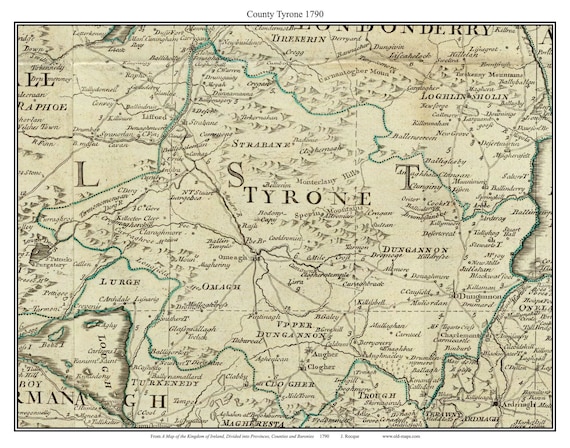 Buy County Tyrone Ireland From 1790 Roque Map Clan Names Old Map