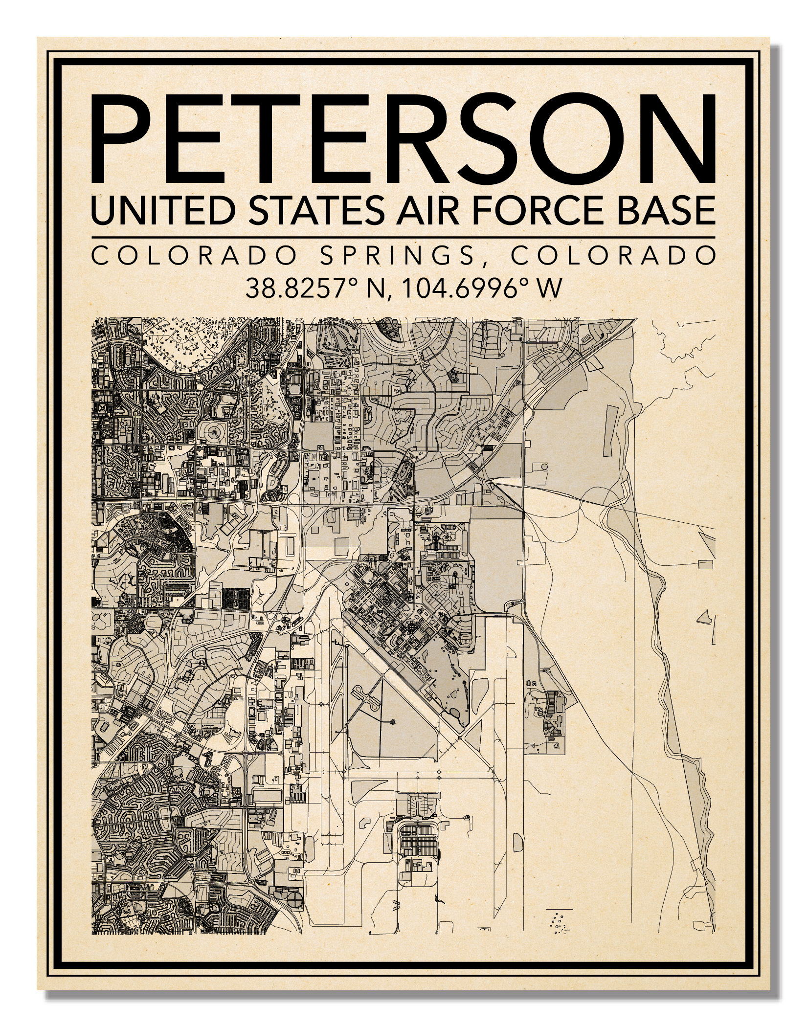 Wall Art Map of Peterson Air Force Base, Colorado Springs, El Paso