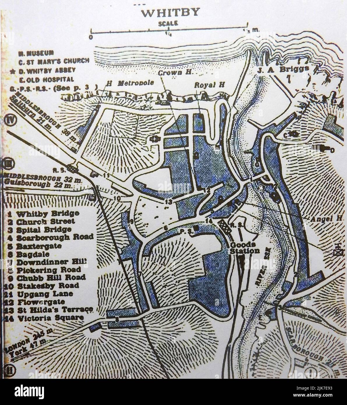 A 1913 map of Whitby, North Yorkshire as it was at that time
