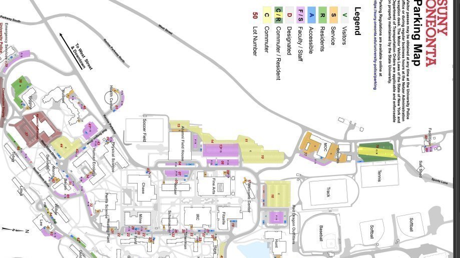 Suny Oneonta Parking Map – The campus parking map is a map of the University of Nevada, Reno main campus showing all of the buildings and the transportation routes (pathways and roadways) on campus and the roads surrounding the . Cindy Falk, assistant dean of graduate studies at SUNY Oneonta, served as one of the many judges for the event, and said that it was โso exciting to see so many young people from around the state do .